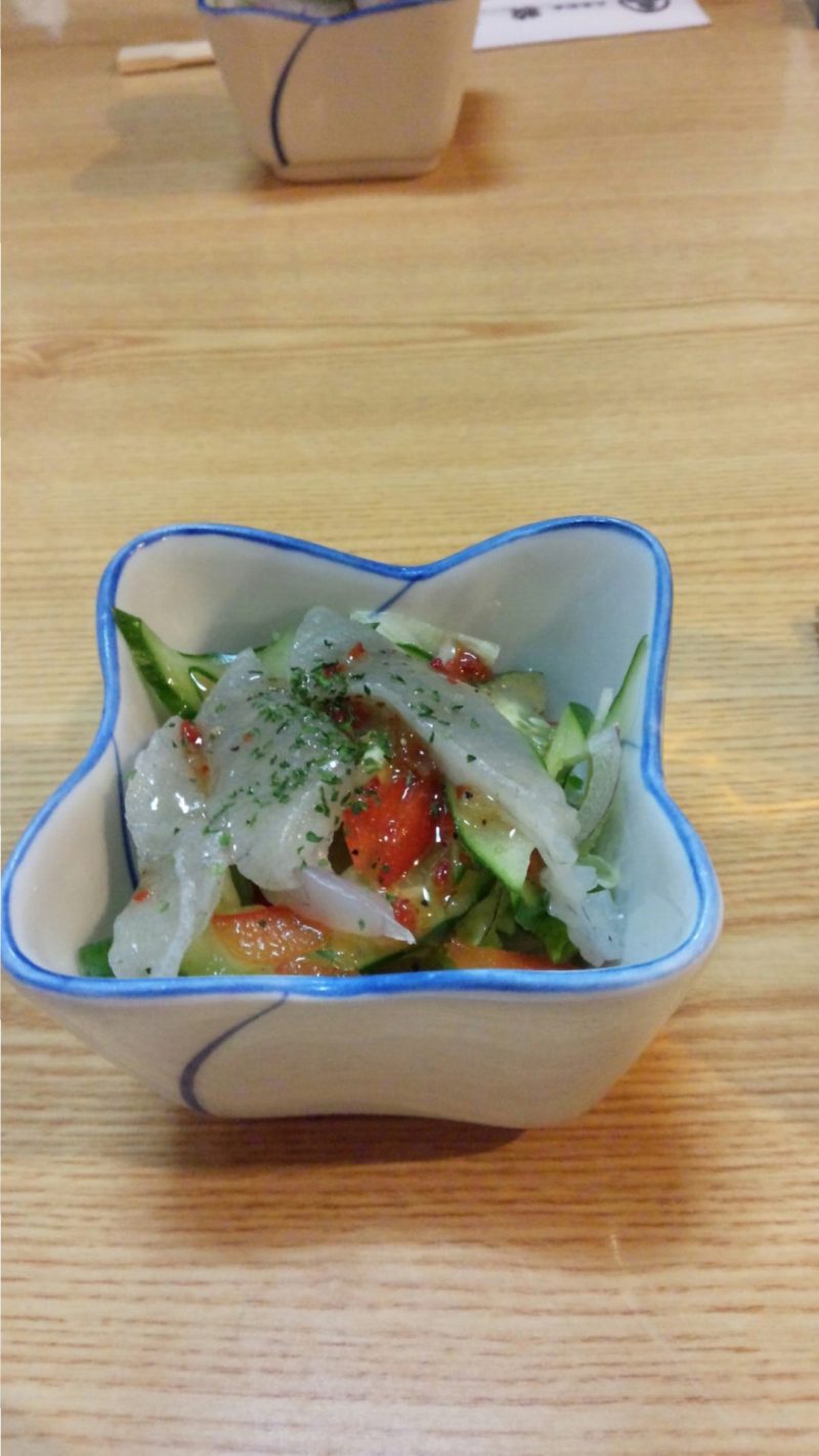 お通しはカルパッチョでした。ここのお通しいつも手が込んでて美味しいです