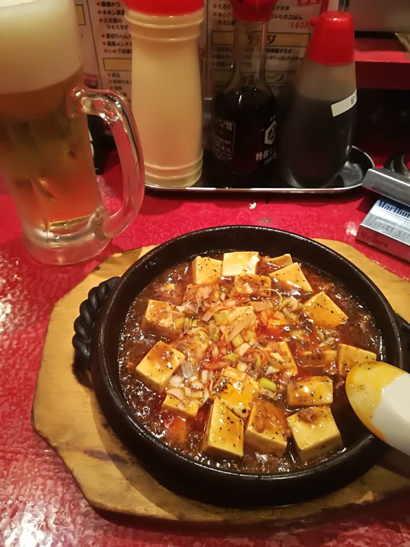 麻婆豆腐アツアツ!!鉄板のままですよ!一人だからって取り皿ないのでこのまま食べるしかない!