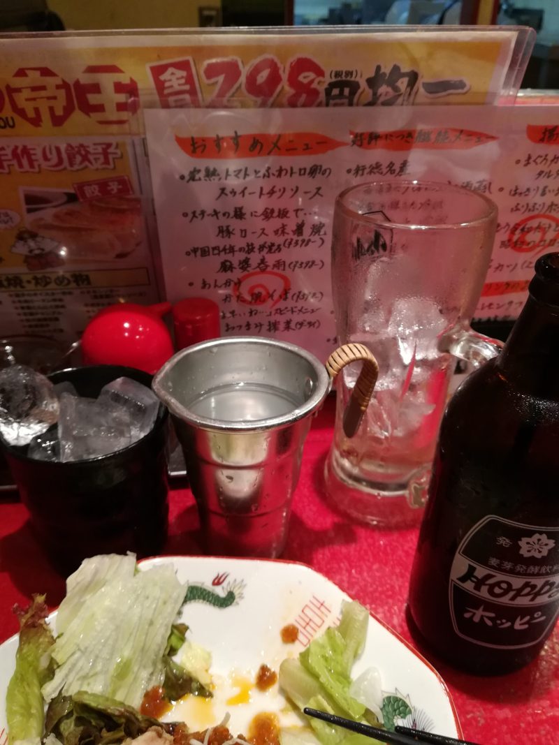 食べログの口コミで飲んでる方がいたのでまねして飲んでみました。久しぶりに飲みましたがホッピー美味しいですね