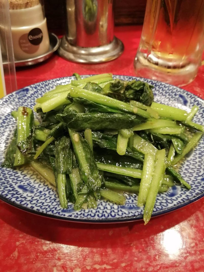 初めてのものを頼んでみよう!と思って青菜炒め。高いところだと空心菜ですがそんな高いもの出せないだろうなーと思ったら小松菜でした