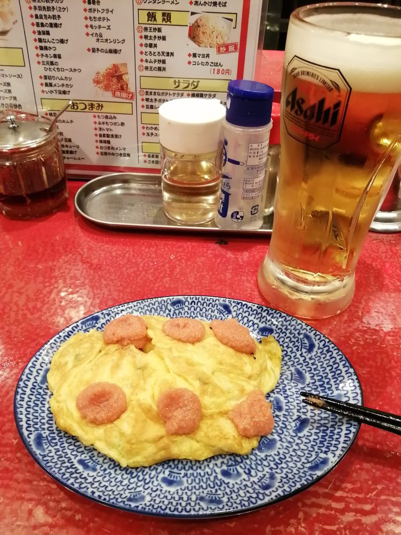 明太玉子焼。ぽちぽちしてるのが明太子です。まさかこのビジュアルで出てくるとは・・・!!