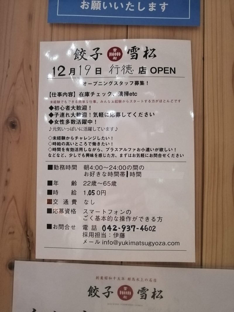 新浜の西友の並びに24時間餃子屋さんが12/19にオープンしましたね