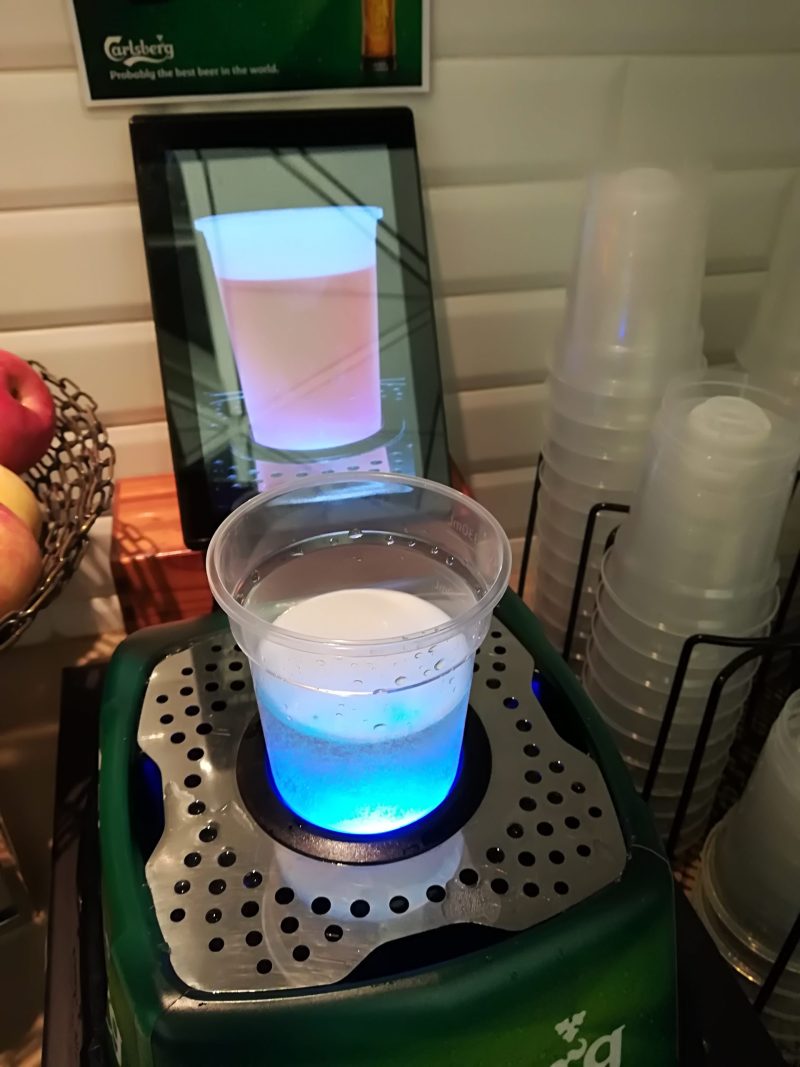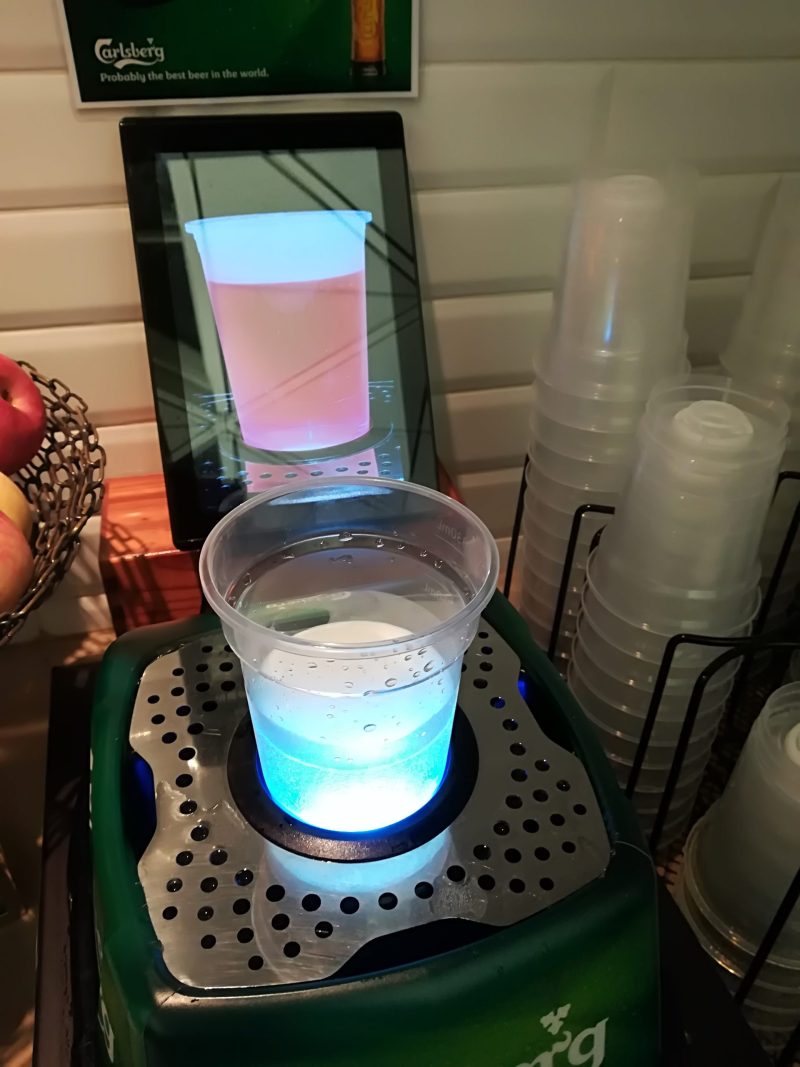 底に秘密があるプラスチックカップを機械の上に置くと・・・