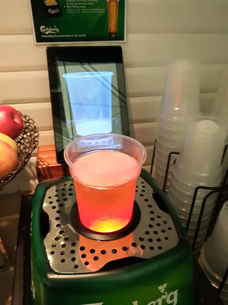 下からビールが入ってきてちょうどいいところで止まります