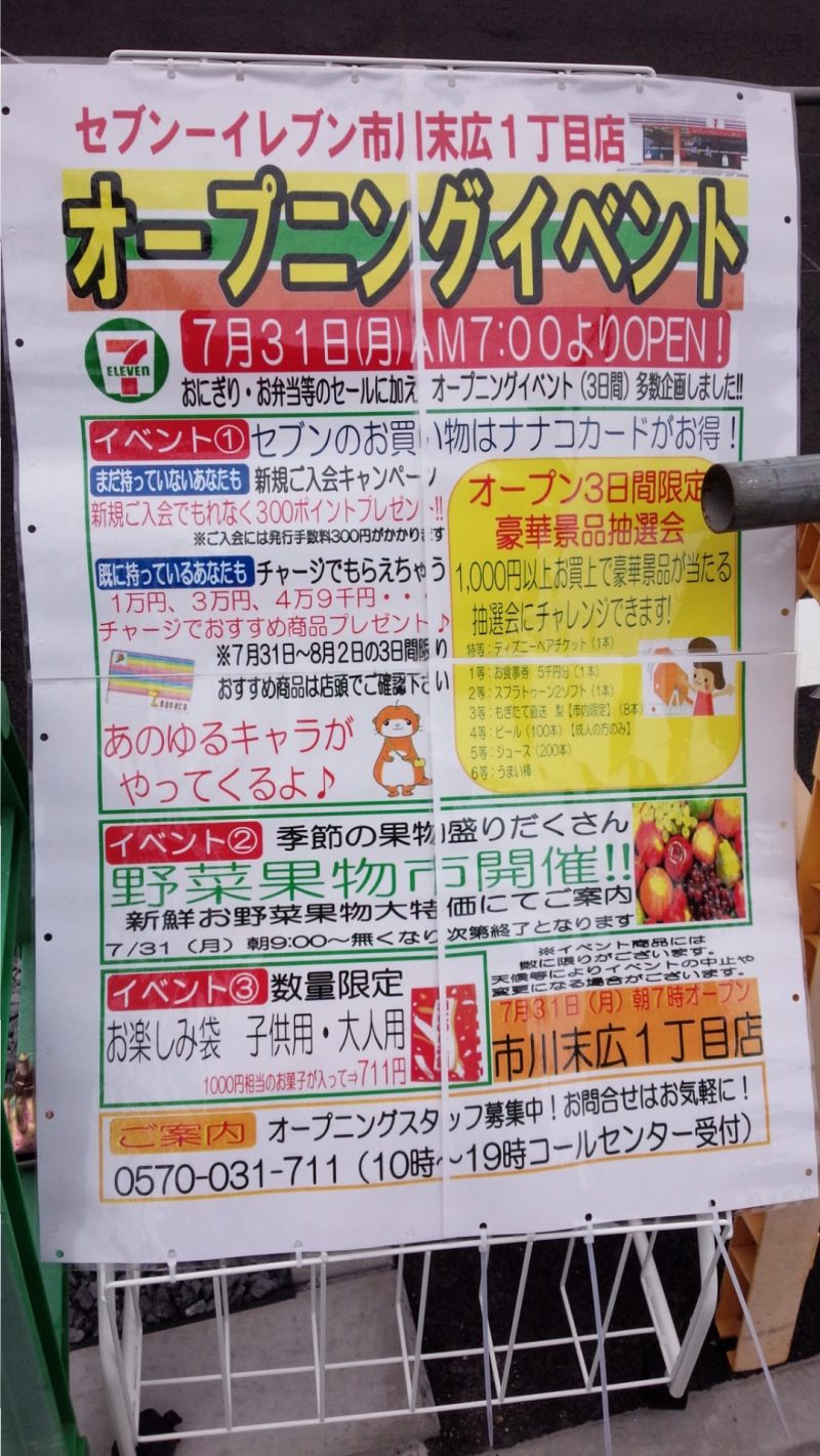 セブンイレブン 行徳 末広1丁目 2017年7月26日 最終更新日時 : 2017年7月26日 restyle-admin 行徳で食べログナンバーワンのお店、ラーメンこむろ の近くにセブンイレブンがオープンします 7月31日に行くといいことあるみたいです うちの近くなので楽しみだな~♪