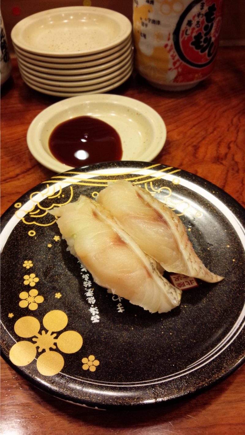 旨い!なんだこの白身、めっちゃ甘いぞ!?と思ったら醤油が甘かった(笑)九州のような甘いお醤油の回転ずしでした